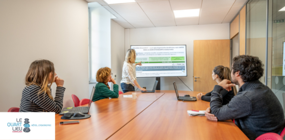 Pour soutenir les entreprises qui naissent ou pour tester des idées, le Quart-Lieu réserve aux porteurs de projets un hôtel d’entreprises conçu pour accompagner leur croissance : domiciliation, postes de travail, salles de réunion…