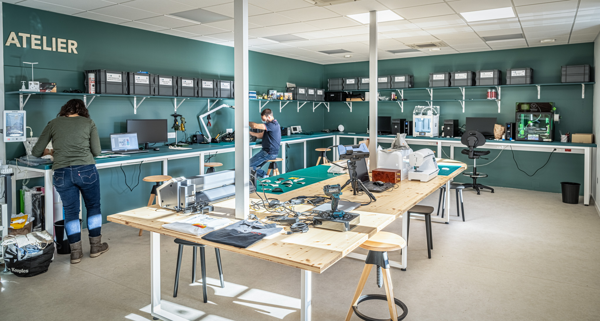 - Le Fablab, un espace dédié à la technologie et au prototypage, où chaque porteur de projet peut venir tester ses idées dans des conditions opérationnelles. Si plusieurs machines de pointe sont déjà installées, mais le parc est pensé pour évoluer en fonction des avancées technologiques, mais aussi des besoins réels rencontrés par les usagers dans leurs projets.