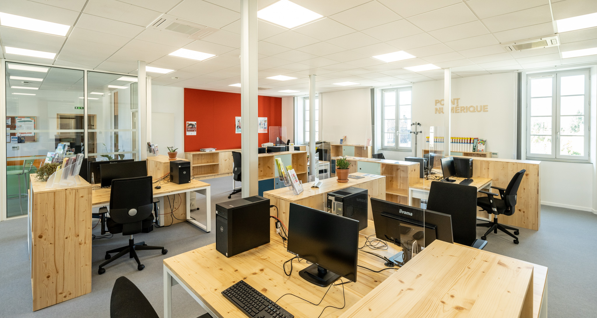 - L’espace de coworking, adapté aux nouvelles manières de travailler. Un endroit où les usagers peuvent passer une journée, deux, ou tout leur temps de travail s’ils le souhaitent.